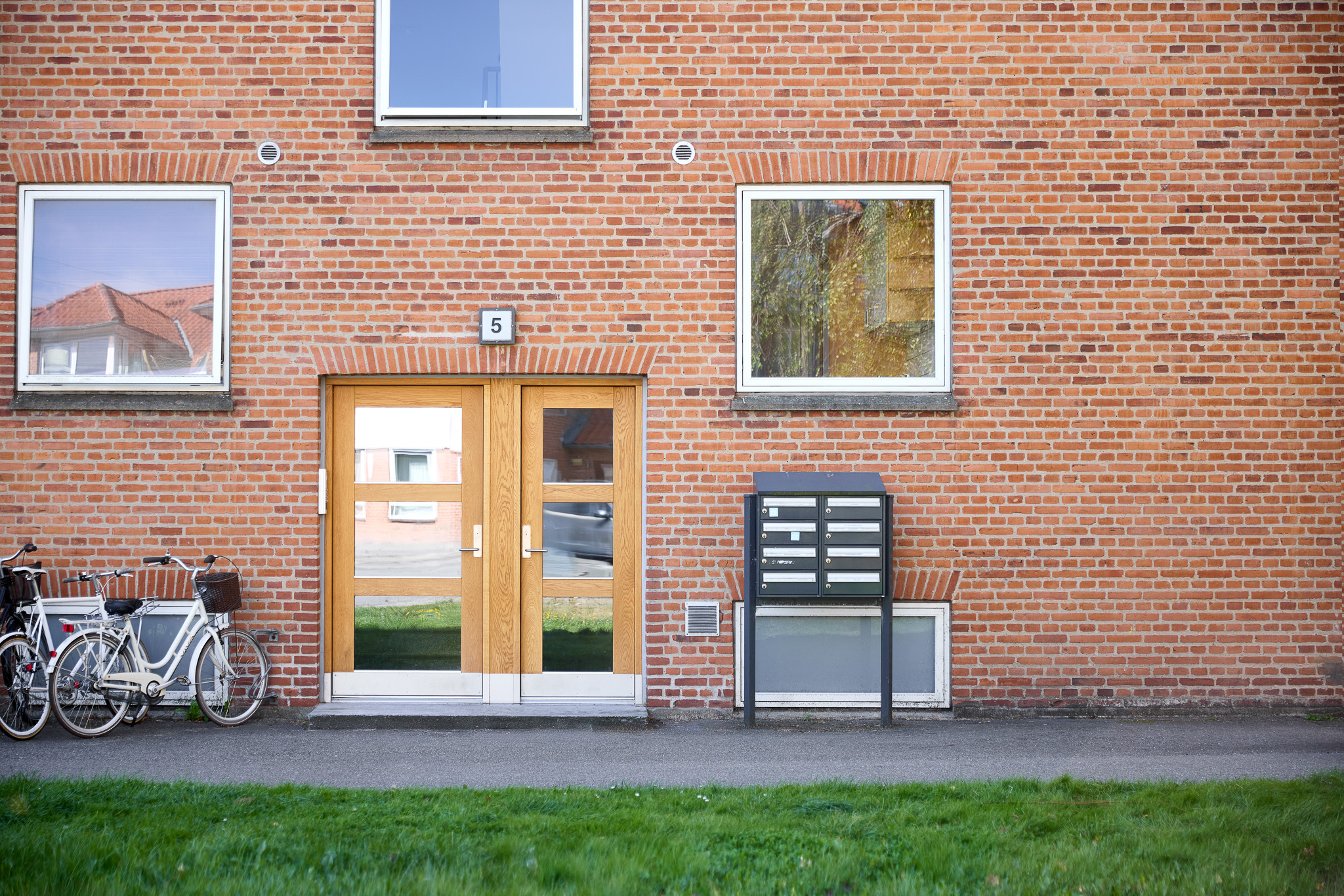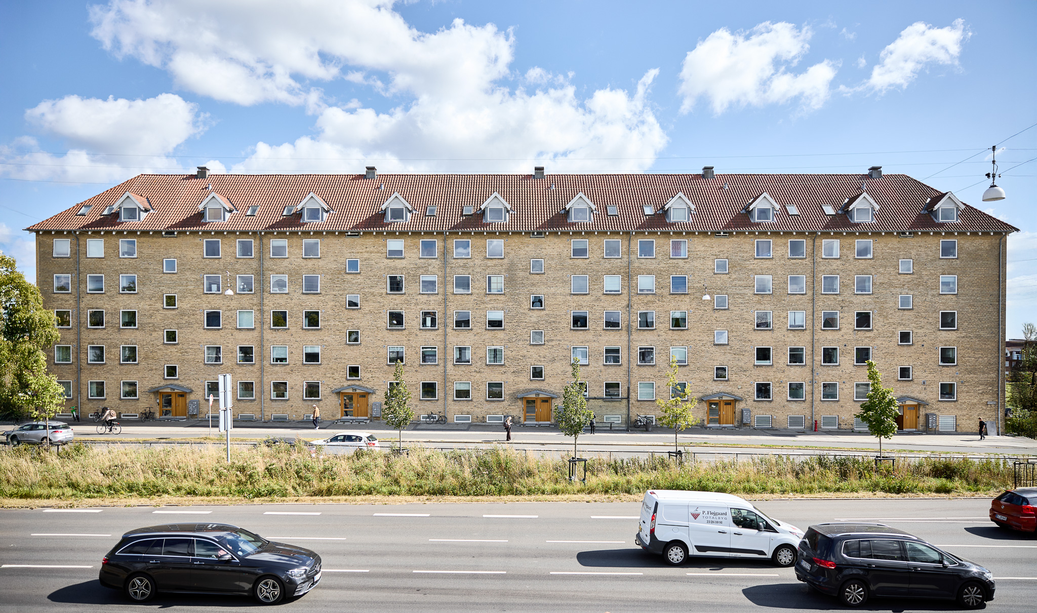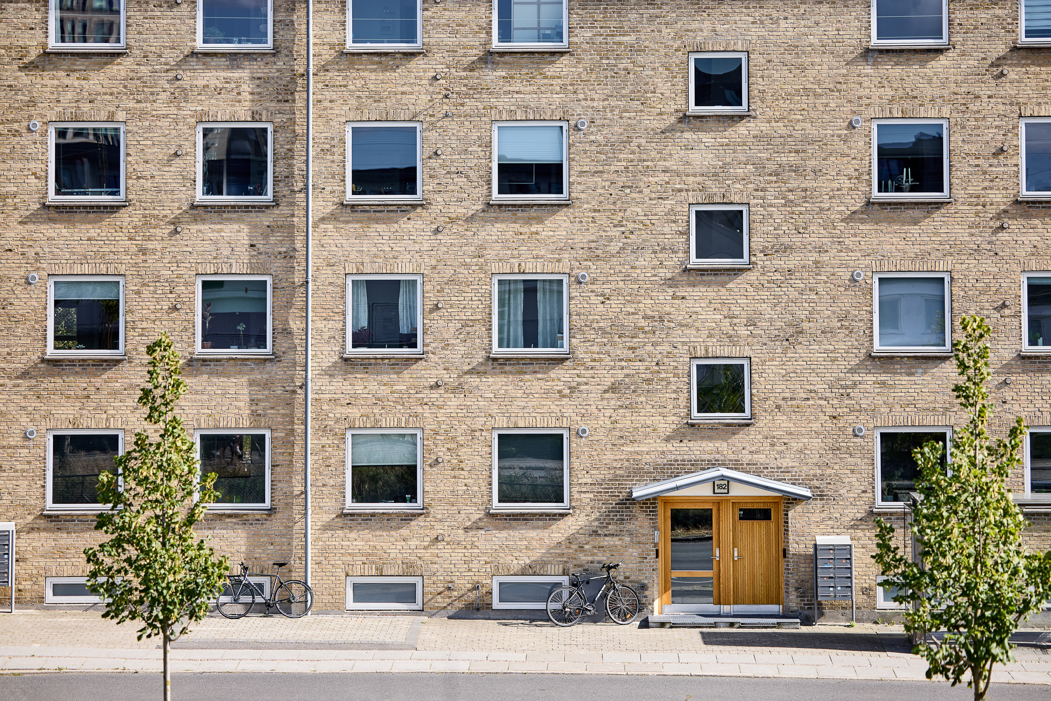 Absalon deler sit arkitektoniske ophav med Admiral, men hvor Admiral fremstår i træ, tilfører Absalon transparens og lys til facaden og til opgangen.