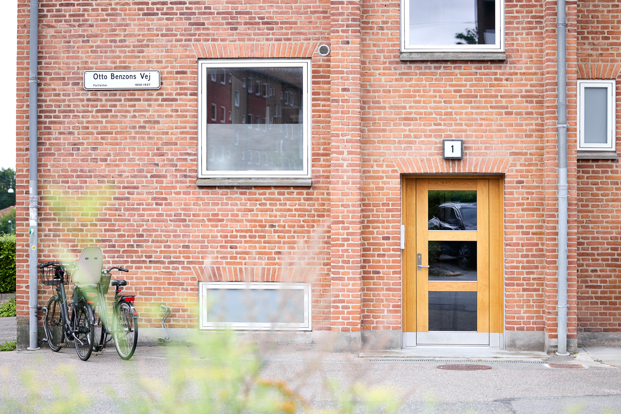 Absalon er en indgangsdør i træ og glas, udviklet med særligt fokus på glasudformning og proportioner i klassiske boligejendomme.