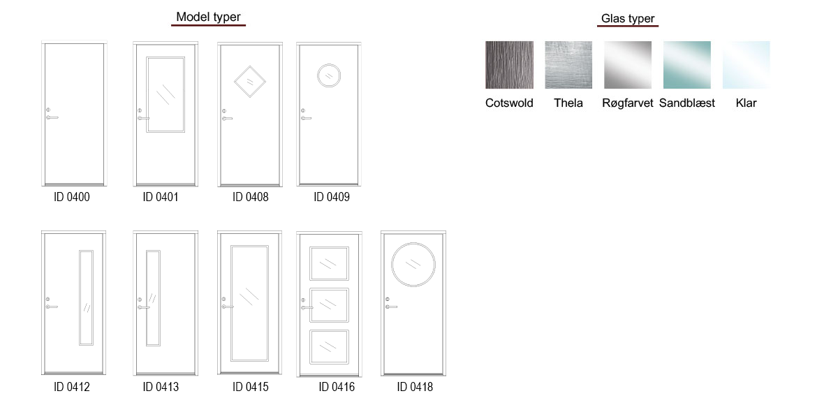 Hoveddøren kan fås med en række forskellige glasudskæringer. Den model, du vælger, bestemmer, hvor meget udsyn og lys, der lukkes ind i husets entré. Typen af glas i døren har også betydning for kigget ind og ud af boligen.